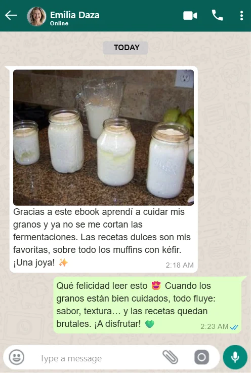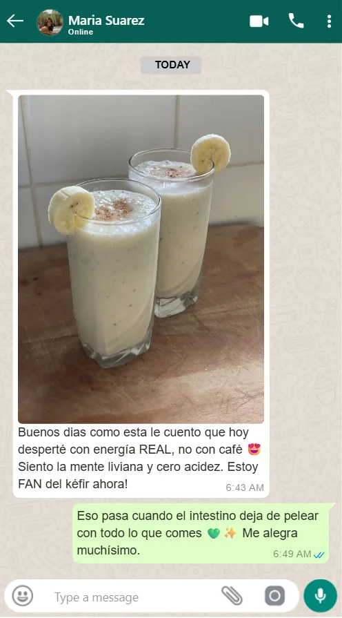 CONVIÉRTETE en alguien que domina el kéfir sin errores, aprende a controlar su sabor y textura para que nunca más se corte, se pierda o quede ácido. CREA TU PROPIO PROCESO paso a paso aplicando las técnicas probadas que ya están ayudando a otros — incluso si empiezas desde cero.